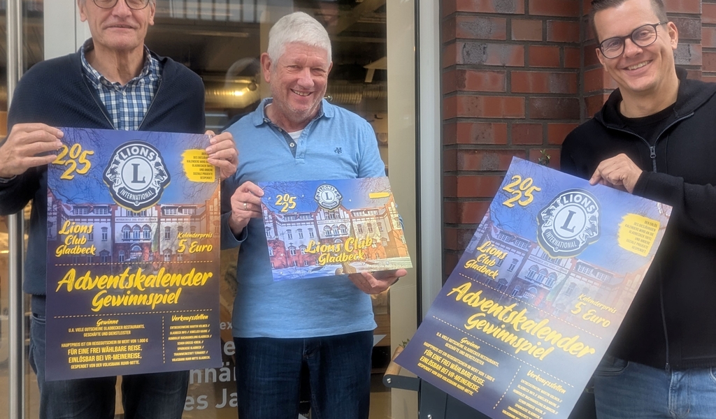 Auch in diesem Jahr bringt der Lions-Club Gladbeck pünktlich zur Adventszeit seinen beliebten Adventskalender heraus – eine Aktion, die Freude schenkt und gleichzeitig Gutes tut. Für nur fünf Euro bietet der Kalender nicht nur die Chance auf attraktive Gewinne, sondern unterstützt auch soziale Projekte in der Region. Der Hauptpreis 2025 ist ein Reisegutschein im Wert von 1.000 Euro, gesponsert von der Volksbank Ruhr Mitte. Insgesamt warten 120 gesponserte Preise im Gesamtwert von über 10.000 Euro auf glückliche Gewinner – darunter Gutscheine für Gladbecker Restaurants, ein Genusswochenende, ein Partygutschein, Gold von der Stadtsparkasse Gladbeck und vieles mehr. Gestalterisch zeigt der Kalender in diesem Jahr die Musikschule Gladbeck, die aktuell ihr 60-jähriges Bestehen feiert. Das Foto stammt von Helmut Grosser, die Grafik wurde erneut unentgeltlich von Jan-Hendrik Lehrich aus Grafenwald erstellt.