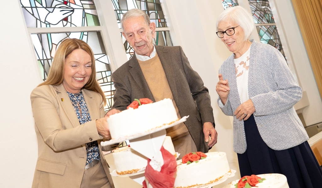 Stellvertretend für alle Ehejubilare durfte das Ehepaar Mulcanowski die Hochzeitstorte anschneiden. Das Paar hatte im vergangenen August Eiserne Hochzeit gefeiert.