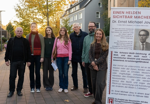 Eine engagierte Gruppe von Schülerinnen des Ratsgymnasiums hat sich unter der Leitung ihres Lehrers Dr. Jörg Judersleben intensiv mit dem Leben und Wirken von Dr. Ernst Michael Jovy beschäftigt. Im Frühjahr präsentierten die Schülerinnen ihre Forschungsergebnisse im Haupt-, Finanz- und Digitalisierungsausschuss des Rates. Die Mitglieder des Ausschusses zeigten sich tief beeindruckt vom Engagement und der fundierten Arbeit der jungen Forscherinnen. Als Konsequenz fasste der Ausschuss den Beschluss, den Jovyplatz künftig nicht nur Dr. Michael Jovy, sondern auch seinem Sohn Dr. Ernst Michael Jovy zu widmen. Damit wird die Erinnerungskultur der Stadt erweitert und das Wirken beider Persönlichkeiten sichtbar gewürdigt.