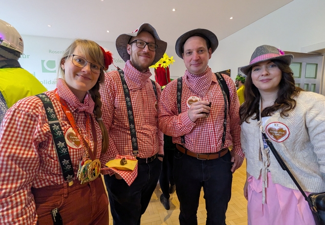 Zum 60-jährigen Jubiläum der Städtepartnerschaft mit Schwechat (Österreich) stand der Rathaussturm in diesem Jahr unter dem Motto „Faschings-Gaudi im Rathaus“. Entsprechend bot sich den Besuchern ein ungewohnt alpenländisches Bild: Überall waren Dirndl und Lederhosen zu sehen, dazu wurden Brezeln gereicht und heller Gerstensaft ausgeschenkt. Die österreichisch-bayrische Atmosphäre verlieh dem närrischen Treiben eine besondere Note und sorgte für zusätzliche Stimmung im und vor dem Rathaus.
