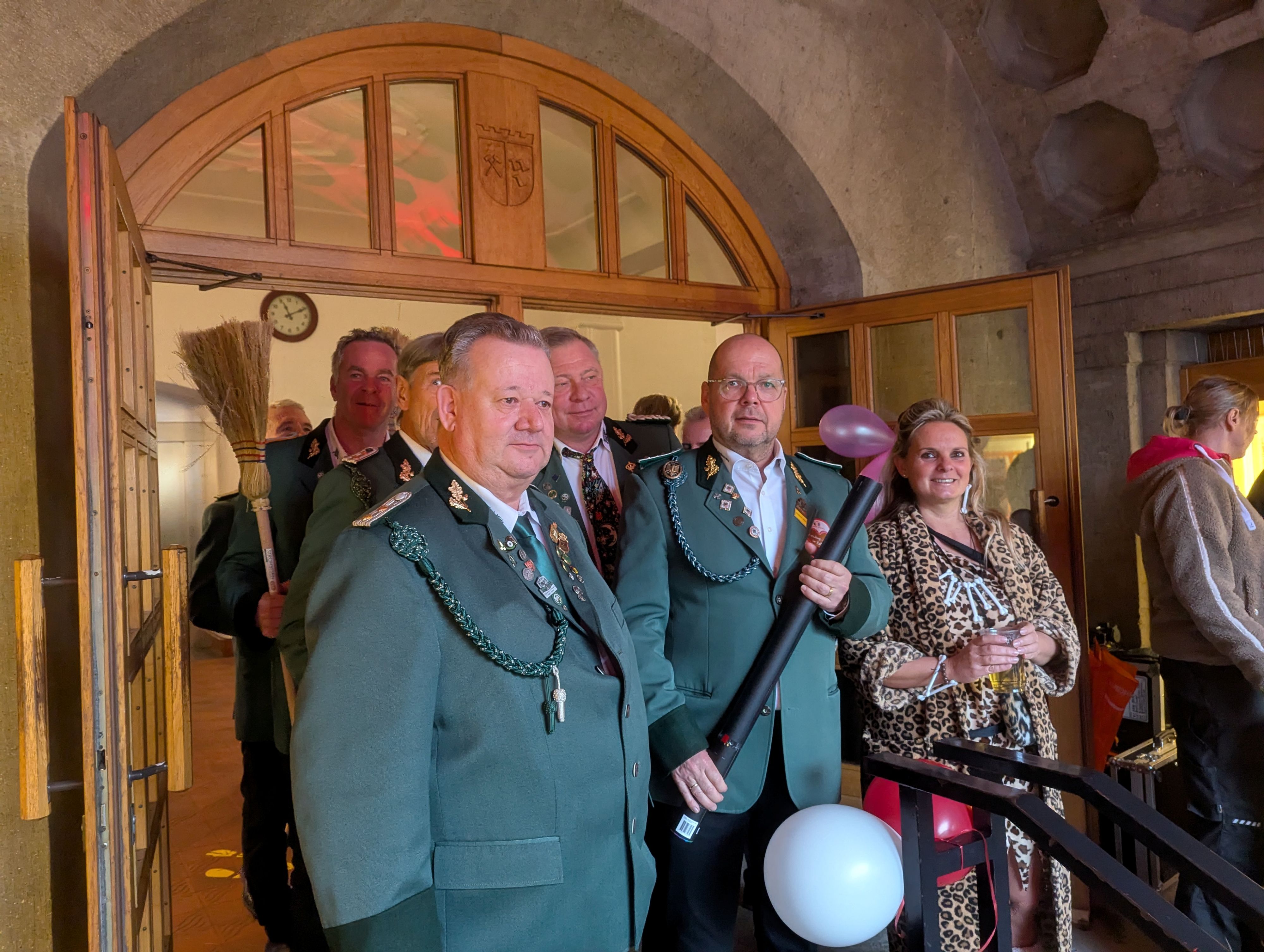 Im Rathaus stellte sich Vize-Bürgermeister Peter Rademacher, der die erkrankte Bürgermeisterin Bettina Weist vertrat, dem Ansturm entgegen – allerdings nur kurz. Gegen die charmante, aber entschlossene Prinzessin und ihr gut gelauntes Gefolge hatte er wenig auszurichten. Auch die Unterstützung durch die Schützen Gladbeck-Mitte und die Schornsteinfeger konnte den symbolischen Machtwechsel nicht verhindern.