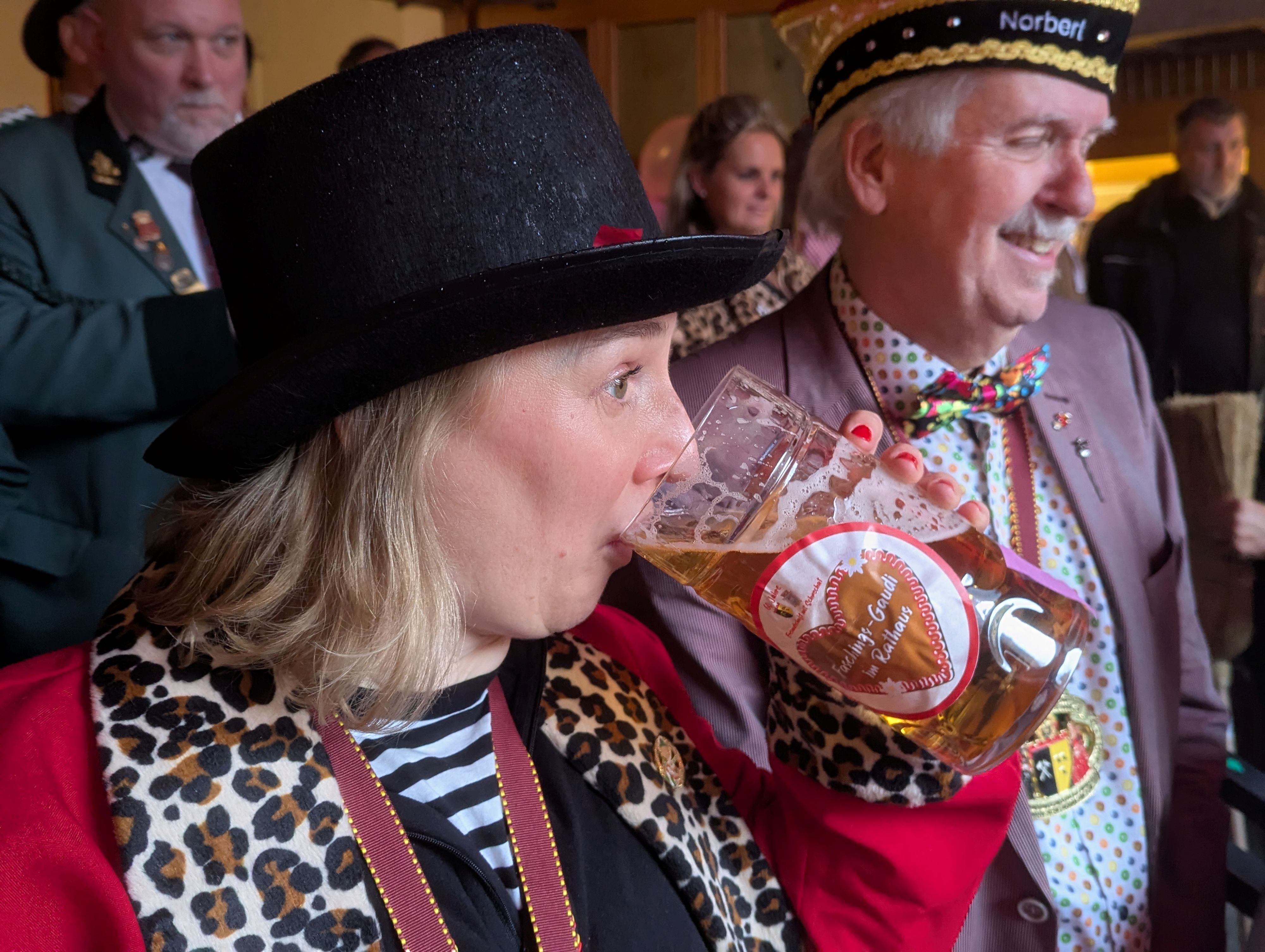 Doch nicht nur rund um das Rathaus herrschte Karnevalsstimmung. Auch in den Gladbecker Kneipen – darunter das Pütter unter neuer Leitung sowie die Rex-Klause, die nach langer Renovierungspause endlich wieder geöffnet ist – füllten sich die Räume schnell mit feierfreudigen Gästen. Der Tag zeigte einmal mehr, dass man für gute Laune und echtes Karnevalsfeeling nicht in die großen Hochburgen Köln oder Düsseldorf reisen muss: Gladbeck feiert auf seine ganz eigene, herzliche Art.
