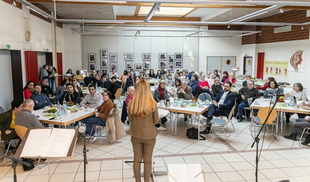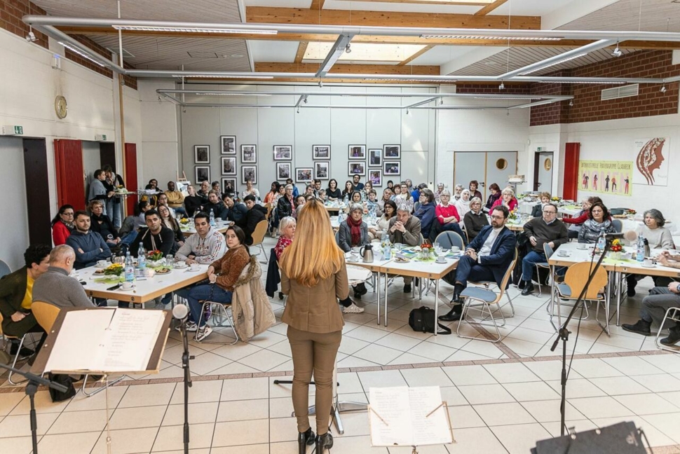 So wurde im Rahmen des Internationalen Frauentages am letzten Samstag im Sozialpastoralem Zentrum K4 mit Musik der Gruppe „One World Band“ unter der Leitung von Norbert Gerbig, Grußworten des Integrationsstaatsekretärs Lorenz Bahr des Ministeriums für Kinder, Jugend, Familie, Gleichstellung, Flucht und Integration (MKJFGFI) des Landes Nordrhein-Westfalen, Bürgermeisterin Bettina Weist, dem Superintendenten des Kirchenkreises, Steffen Riesenberg, Beiträgen des Fotografen Oleksandr Akatov aus der Ukraine, Ruba Hayani aus Syrien, Tazel Ahmad Adel aus Afghanistan und Frauen der Frauengruppe diese besonderen Anlässe begangen.