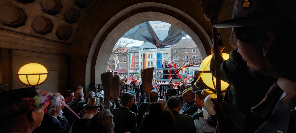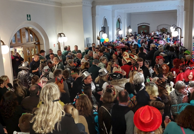 Nach dem üblichen Austausch von diversen Orden fielen die feierwütigen Karnevalisten ins Rathaus ein. Die Belagerten kapitulierten und übernahmen die rauen Sitten der Belagerer: Tanzen, Singen, Schunkeln und Feiern bis die Fässer leer waren. Auch Bürgermeisterin Bettina Weist genoss ihr erstes Mal sichtlich und freute sich, dass so viele Bürger mitfeierten. „Die Leute freuen sich, wieder feiern zu können. Und das wiederum freut mich“, sagte sie mit strahlendem Lächeln und hier und da das Tanzbein schwingend.
