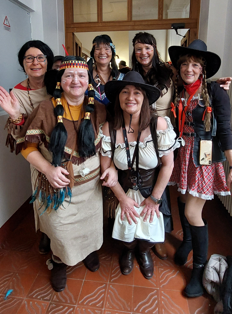 „Ich gebe dir die letzte Chance! Lass uns die Friedenspfeife rauchen, ansonsten rufe ich Manitou“, so ihre ultimative Drohung. Spätestens da schwante den Belagerten, dass Tine auf Kriegsfuß ist und nicht eher aufgeben wird, bis der Schlüssel zum Rathaus in ihren Händen ist. Alle weiteren Überredungsversuche prallten an der resoluten Prinzessin ab. Auch der Beschuss mit der Konfettikanone ließ die Gegner auf der anderen Seite nicht wanken. Manitou, in Form einer roten Hebebühne mit Teleskoparm, erschien auf ihr Kommando, bereit, Tine direkt über das Rathaustor zu heben. Bei so viel Beistand von oben konnten Bettina Weist und ihre Verteidiger nur den Schlüssel freigeben. Damit war der Weg für Tine und ihrem Prinzen Volker I. samt Gefolgschaft frei und das Rathaus wurde einmal mehr erfolgreich gestürmt.