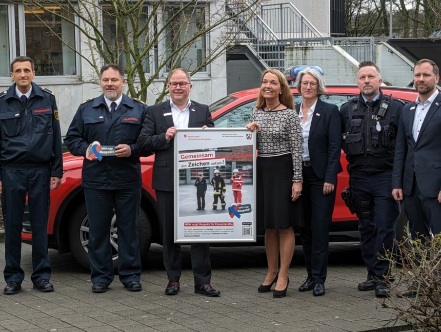 „Mir stellen sich die Nackenhaare hoch, wenn ich sehe, wie heute der Umgang mit Rettungskräften ist“, sagt Marcus Steiner, Vorstandsvorsitzender der Stadtsparkasse Gladbeck. Früher hatten die Menschen Respekt vor Feuerwehr und Polizei, heute ist das gefühlt nicht mehr so. Grund genug für die Sparkasse Gladbeck, sich an der Kampagne „NRW zeigt Respekt“ des Innenministeriums zu beteiligen. „Übergriffe auf Polizei und Rettungskräfte nehmen zu, aber auch die Stadtsparkasse kann ein Zeichen setzten“, ist sich Marcus Steiner sicher. Auch seinen Mitarbeitern gegenüber lässt Respekt und Achtung nach, mehrmals musste man sich auch hier in der Vergangenheit schon Hilfe durch die Polizei holen.