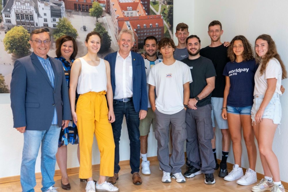 Gladbeck - Vom 21. bis 24. Juni ist eine Gruppe junger Tennisspieler aus Enfield zu Gast in Gladbeck, um hier unter anderem ein Vergleichsturnier auszutragen. Die Teilnehmenden des diesjährigen Sportaustauschs waren jetzt zu Besuch im Rathaus und wurden von Norbert Dyhringer, Erster Stellv. Bürgermeister, begrüßt. Besonders schön: Das ITF-Turnier, das Internationale Weltranglisten Jugendturnier, findet noch bis 24. Juni auf der Anlage des TCHW statt. Auf die Jugendlichen warten somit abwechslungsreiche Tage. Der Organisator des Austausches ist Dieter Martin, der das deutsch-englische Miteinander von Beginn an mit sehr viel Herzblut und persönlichem Engagement lebt. Unterstützt wird der Sportaustausch durch die Stadt Gladbeck.