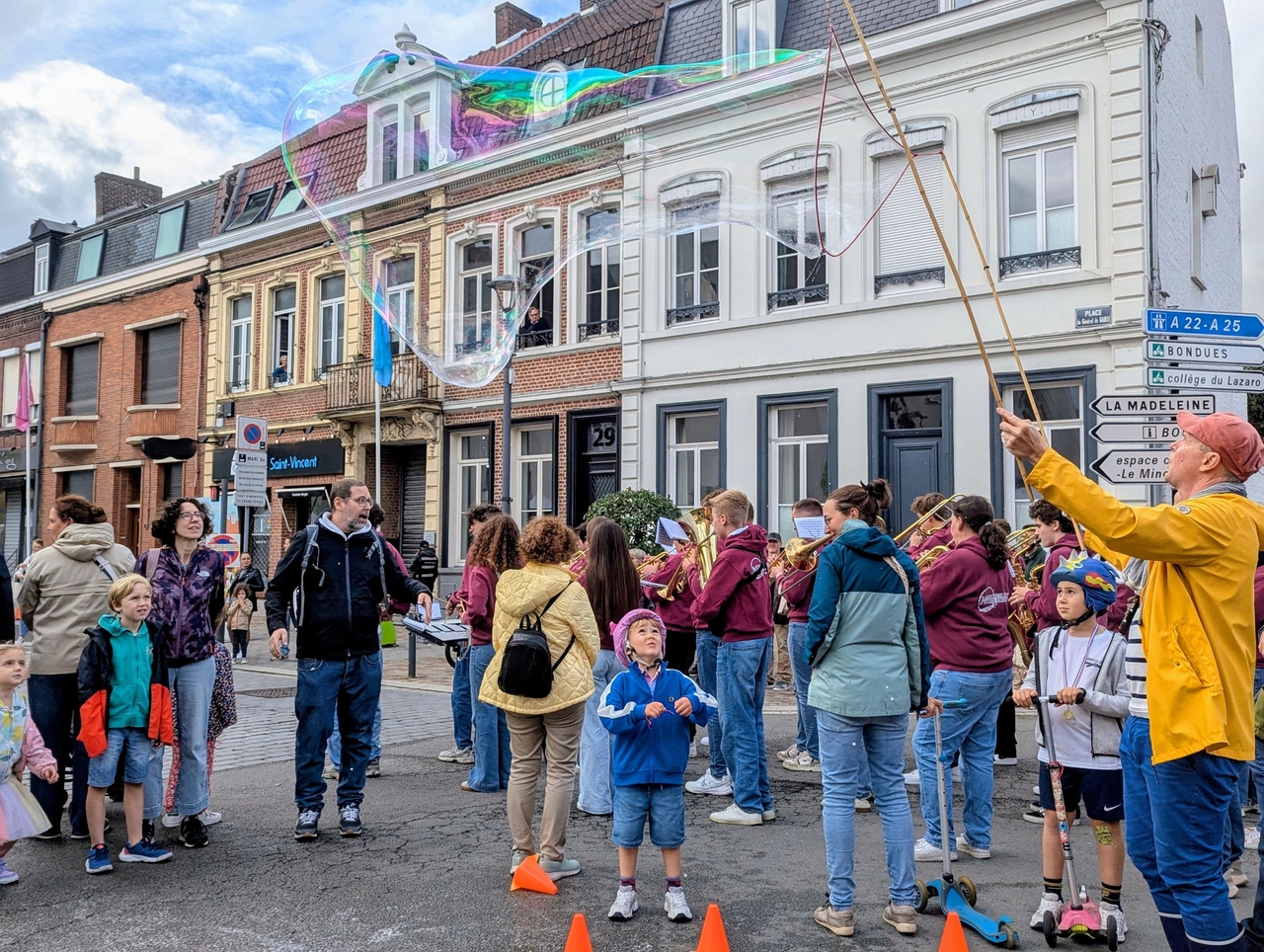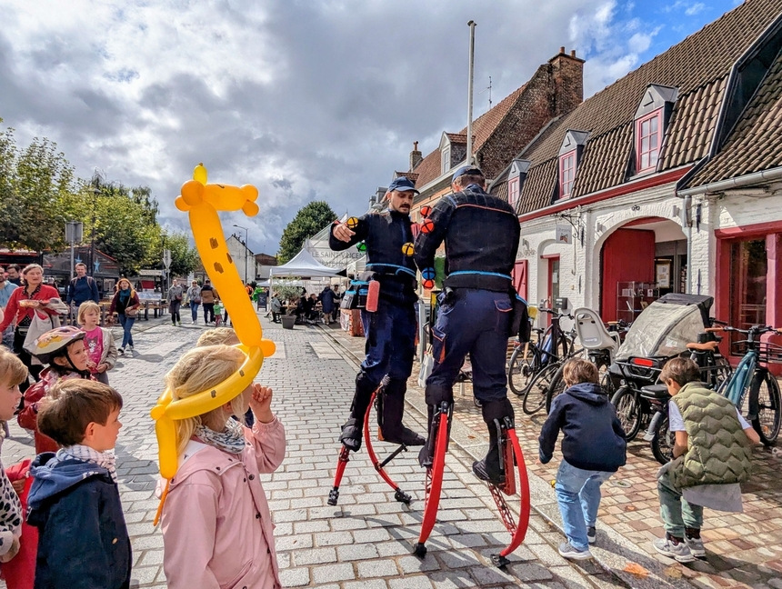 Bereits am Dienstag machte sich eine Gruppe des Freundeskreises Marcq-en-Barœul per Fahrrad auf den Weg und traf am Samstag in Gladbecks französischer Partnerstadt ein. 350 Kilometer legten sie in den vier Tagen auf dem Rad dabei zurück und wurden bei ihrer Ankunft von Bürgermeister Bernard Gérard im Rathaus der Stadt begrüßt. Am Sonntag nahmen sie gemeinsam mit den „Amis de Gladbeck“ die per Bus angereisten Gladbecker in Empfang. Anschließend besuchten alle gemeinsam das stimmungsvolle Herbstfest in der Altstadt – ein schönes Beispiel für lebendige Städtepartnerschaft und herzliche Begegnungen. Zahlreiche liebevoll gestaltete Stände luden zum Stöbern, Genießen und Einkaufen ein. Ob handgefertigter Schmuck aus Recyclingmaterial, kunstvoll Gehäkeltes, dekorative Accessoires oder frisch gebackene Gaufrettes – die kleinen französischen Waffeln – das Angebot war ebenso vielfältig wie verlockend. Die charmante Vorstadt von Lille verwandelte sich in ein lebendiges Festgelände, das zahlreiche Besucher anzog.