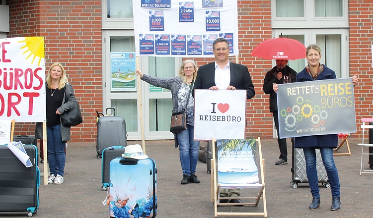 Schermbeck - Die Corona-Pandemie hat die Reisebüros des Reiseweltmeisters Deutschland in einem Ausmaß getroffen, wie kaum eine andere. Weltweite Reisewarnungen wurden ausgesprochen, Einreiseverbote verhängt. Zehntausend Reisebüros verzeichnen keinerlei Einkünfte, so auch in Schermbeck. Nun haben sich die Betreiber zusammengetan, um der Branche ein Gesicht zu geben und hielten Mahnwache auf dem Platz vor dem Schermbecker Rathaus. Es gibt keine Reiseneubuchungen, nur Stornierungen, wenig Umbuchungen, aktuell keine Provision und, noch schlimmer, die Rückforderungen der Veranstalter von bereits geflossenen Provisionen. Reisebüros erhalten diese allermeist nach erfolgter Abreise der Kunden - millionenfach in Milliardenhöhe. Auch die Flut der Rückfragen verunsicherter Kunden ist riesig und wird kostenfrei bearbeitet, da die Vertragspartner der Kunden, die Reiseveranstalter, nicht erreichbar sind. Jetzt fragen sich die Reisebüros: Wer hilft uns?