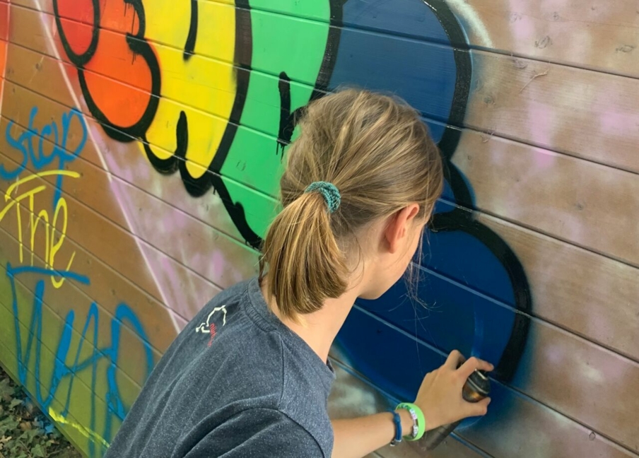 Besonders die Kreativ-Angebote werden gut angenommen. „Von den Jüngeren mehr als von den Älteren“, erklärt Laura Blankenstein, Leitungsvertretung des Freiraum Grafenwald. „Die Älteren brauchen eher Action.“ Hier wird allerdings nicht nur gemalt. Batiken, Untersetzer-Herstellung, Etui-Gestaltung, Bemalen von Tassen und Graffiti sind die Angebote, die besonders gut ankommen – für ein minimales Entgelt.