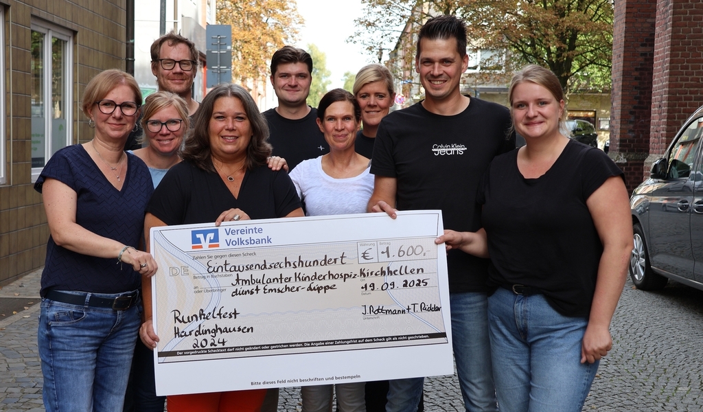 „Der Kirchhellener Gastronom Stefan Bertelwick macht viel Werbung für den Hospizdienst und hat uns darauf aufmerksam gemacht, dass das Geld hier sehr gut aufgehoben ist“, erklärt Ridder. Der ambulante Kinder- und Jugendhospizdienst Emscher-Lippe begleitet Kinder, Jugendliche und junge Erwachsene mit lebensverkürzenden Erkrankungen sowie deren Familien. „Wir finanzieren uns zu zwei Dritteln über Spenden, weshalb wir für jede Hilfe dankbar sind“, freut sich Koordinatorin Alexandra Rose. Getragen wird das Ganze aus haupt- und ehrenamtlichen Kräften.