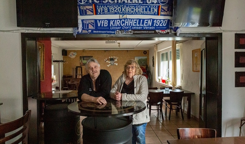 „Wie hier Jung und Alt miteinander leben und feiern, das ist wirklich einmalig“, schwärmt der Kirchhellener. Besonders seine „Jungs“ vom VfB Kirchhellen hat er in sein Herz geschlossen. Diese Liebe spiegelt sich in sämtlichen Ecken des Klosterstübchens wider. Einige Vereinsutensilien zieren die Wände. Dieter und Bärbel haben eine große Stammkundschaft, die ihnen die nötige Kraft gibt durchzuhalten. Schon seit Jahren kursiert das Gerücht, sie würden dichtmachen. Bisher konnte er dies dementieren, aber jetzt trifft er auf bestürzte Gesichter.