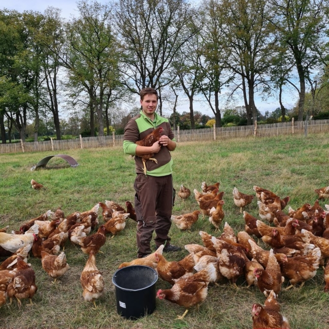 Mittlerweile legen die Hennen schon fleißig (Bio-)Eier, die zum Verkauf angeboten werden. Zertifiziert sind sie noch nicht, aber: „Das wird zeitnah erfolgen“, betont Benedikt Schlamann. Die Weide-Eier stehen ab sofort im Verkaufsraum neben dem Café Lühlerheide auf der Marienthaler Straße 10 bereit. Auch Birnen und Äpfel von der Streuobstwiese werden dort angeboten.