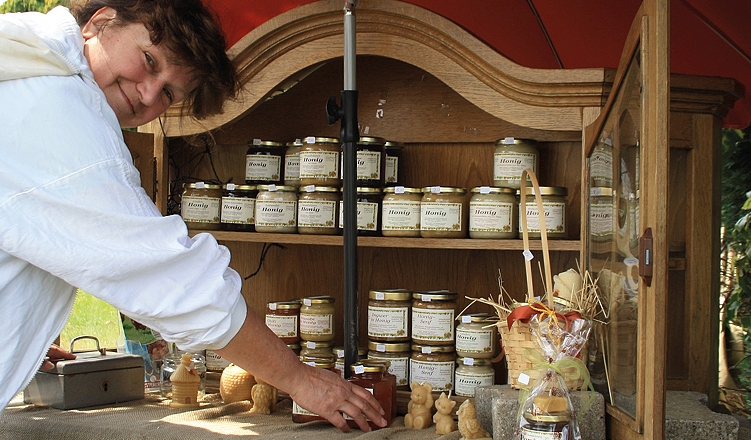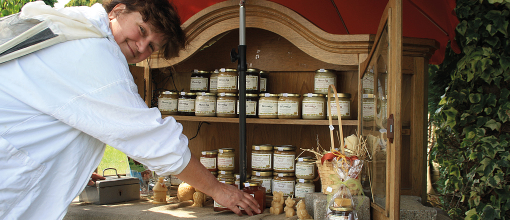 Die Plätze, an denen Heike Holzum ihre Bienenstöcke hat, liegen im eigenen Garten und an Orten, die abseits von intensiv genutzten landwirtschaftlichen Flächen den Bienen ausreichend Nahrungsgrundlagen bieten. Gerne hätte sie weitere. Wer also einen abgelegenen Garten oder ein Grundstück hat, auf dem Bienenstöcke angesiedelt werden können, kann sich gerne bei ihr melden. Leckeren Honig verkauft Heike Holzum übrigens auch. In der Einfahrt ihres Hauses ist ein kleiner Verkaufsstand mit Kasse. Hier darf jeder kommen und Honig kaufen. „Das funktioniert gut, ich habe kaum Ärger mit Zechprellern oder Diebstahl und hoffe, das bleibt auch so“, freut sich die Imkerin. gj