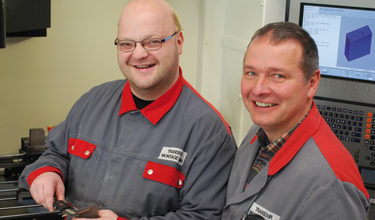 „Das neue Bearbeitungszentrum ist ja doppelt so schnell wie meine alte Maschine“, staunt Jens Späinghaus, der seit 15 Jahren Mitarbeiter in der Integrationsfirma Transfair Montage ist. Die Firma bietet Menschen mit Behinderung sozialversicherungspflichtige Arbeitsplätze. Transfair Montage ist rechtlich und wirtschaftlich unabhängig. Sie unterstützt Menschen mit Behinderung, die sich aus einer festen Arbeitsstelle heraus auf dem allgemeinen Arbeitsmarkt bewerben. Jens Späinghaus freut sich, genau wie Betriebsleiter Paul Riedel, über die Neuanschaffung an seinem Arbeitsplatz, der sich im Fachzentrum Metall des Benediktushofes im Maria Veener Gewerbegebiet befindet: „Nun sind wir in der Lage, hochfeste Stähle, wie sie im Kran- und Hubarbeitsbühnenbau benötigt werden, zu bearbeiten“, sagt Riedel – „und zwar mit der notwendigen Präzision und Wirtschaftlichkeit“.